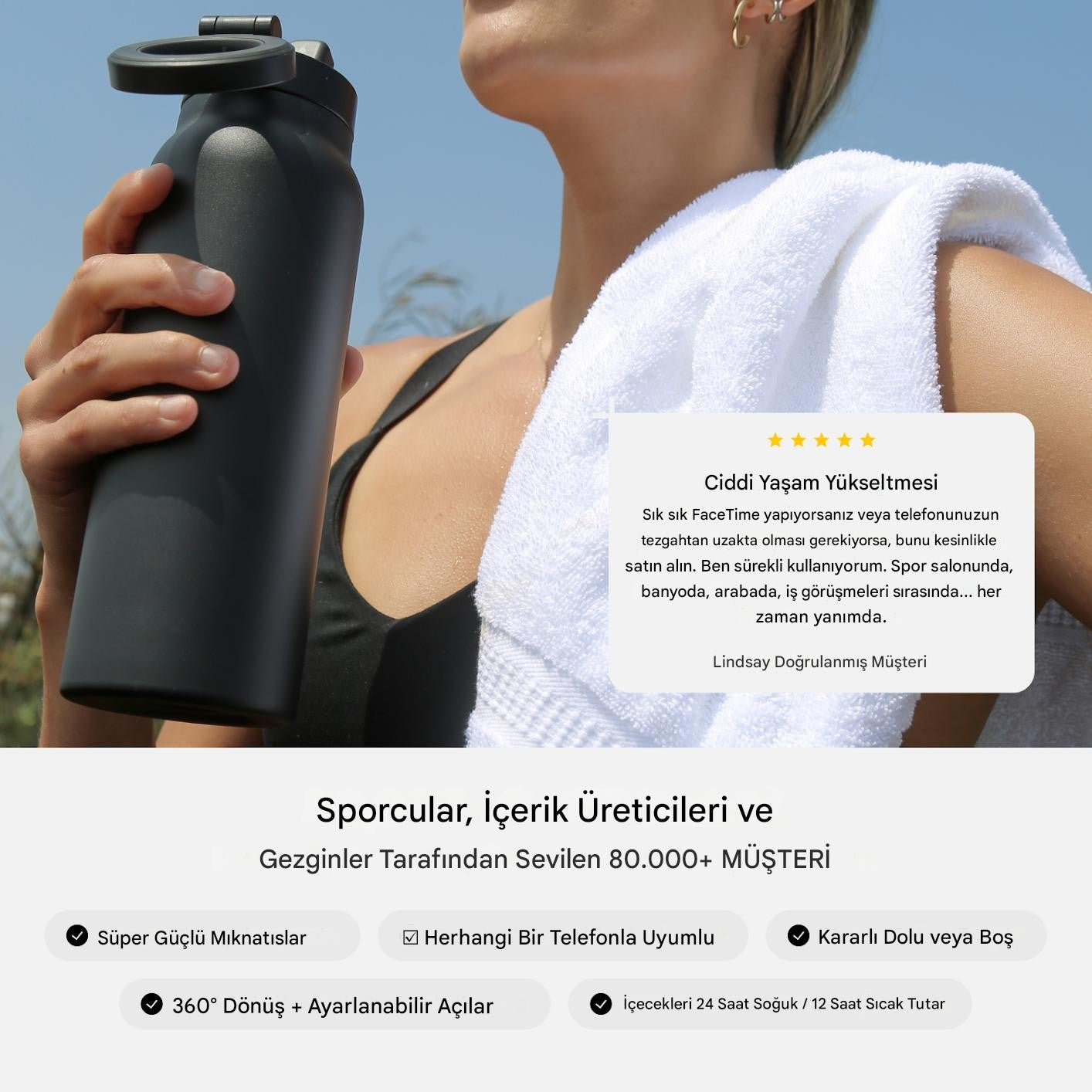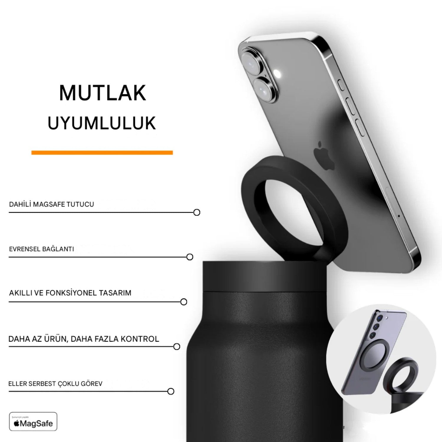 Orin sadece bir termos değil; ezber bozan bir deneyim. Dahili MagSafe uyumlu yuvası sayesinde telefonunuzu antrenmanlarınızda, görüntülü görüşmelerinizde veya içerik üretimlerinizde mükemmel açıda güvenle tutar. Kusursuz kullanım kolaylığı her an yanınızda.